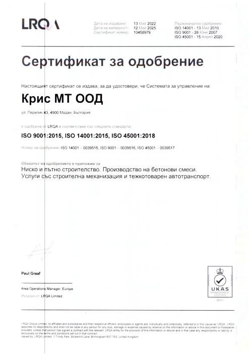| Строителна фирма Крис МТ ООД , Ниско и пътно строителство, Производство на бетонови смеси, Услуги със строителна механизация и тежкотоварен автотранспорт, Крис МТ Мадан | ||